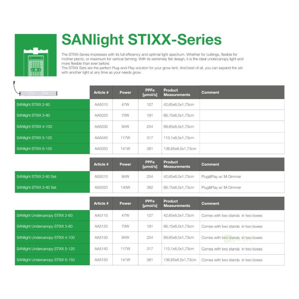 Umożliwia optymalne rozmieszczenie modułów STIXX w strefach podkoronowych. Wytrzymała i stabilna konstrukcja zapewniająca niezawodne działanie. Szybki montaż bez użycia narzędzi. Nadaje się do uprawy w pomieszczeniach, rzędów roślin i niskich instalacji. Stojaki SANlight umożliwiają precyzyjne wyrównanie opraw oświetleniowych w dolnej strefie korony, zapewniając, że światło dociera do obszarów, które go najbardziej potrzebują.
