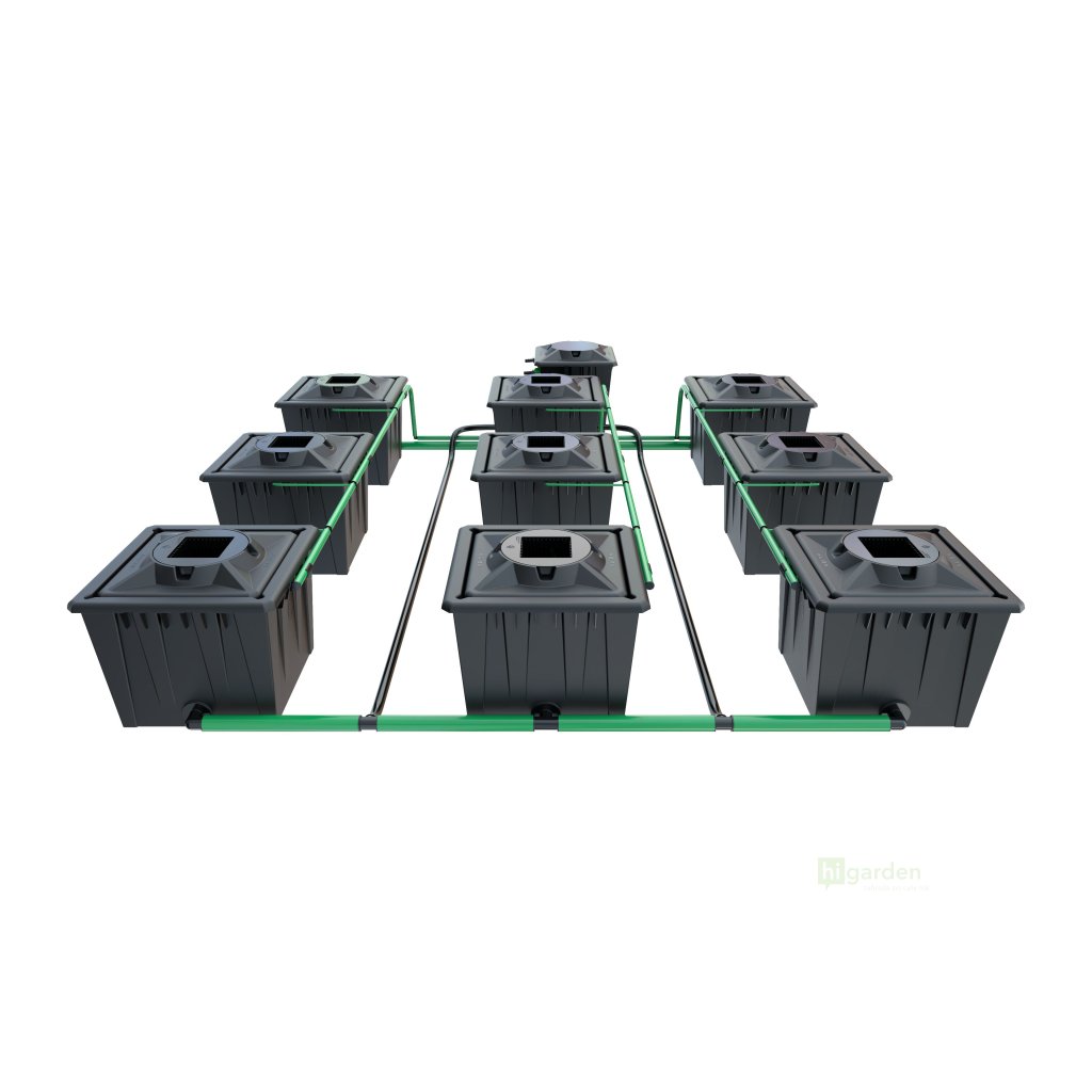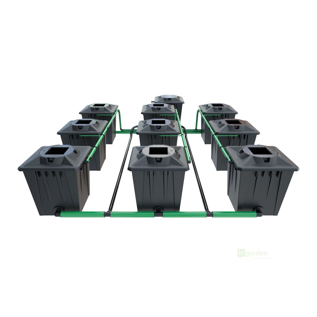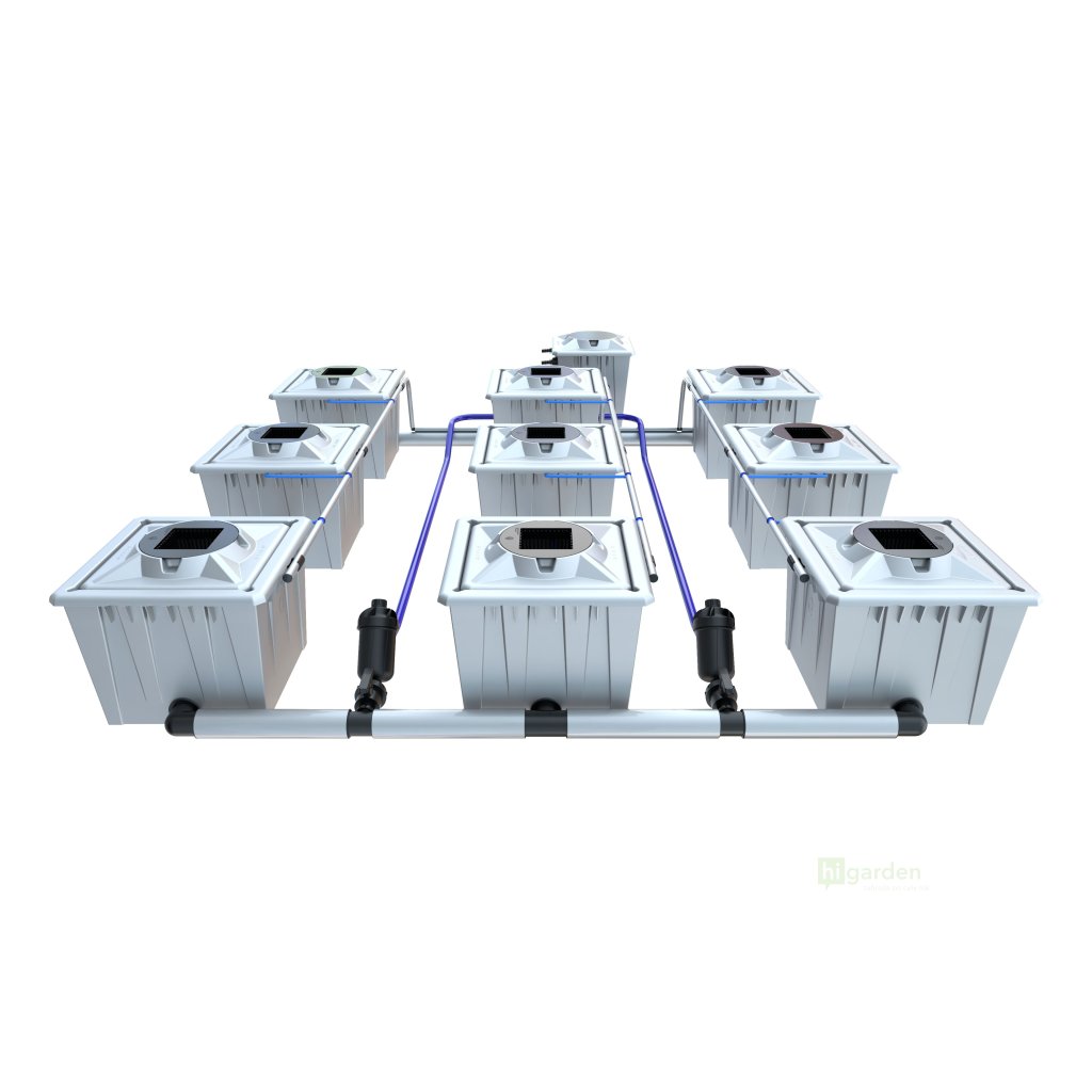 Alien Hydroponics RDWC 9Pot z dziewięcioma doniczkami jest dostępny w wariantach Silver (srebrny) i Black (czarny). Możesz wybrać spośród dwóch rozmiarów doniczek, oba warianty są dostępne w rozmiarach 20L i 36L.