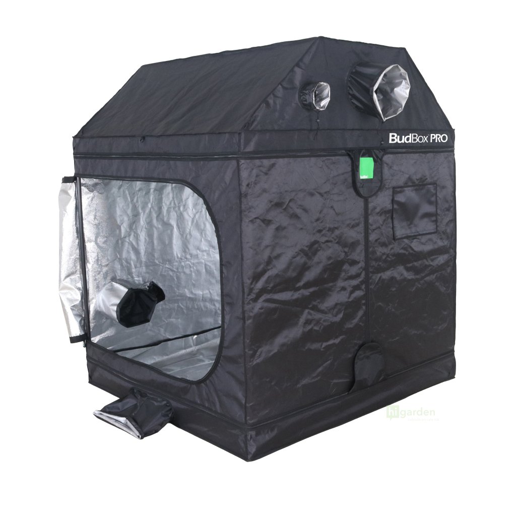 Budbox PRO XL+ R 150 jest przeznaczony do oświetlenia HPS i LED. Wykonany w 100% z nieprzezroczystego, 4-warstwowego materiału, który jest nietoksyczny, oraz z metalowej konstrukcji z wysokiej jakości wykończeniem. Namioty BudBox są teraz wyposażone w stalowe złącza push & click fit, które oprócz mocniejszych hartowanych stalowych słupów zapewniają większą wytrzymałość dla wszystkich filtrów, wentylatorów i wymagań oświetleniowych. Nowy model PRO posiada ulepszenia, takie jak nowe opatentowane nieprzezroczyste zamki, metalowe łączniki i dolna rama specjalnie przystosowana do odprowadzania wody. Ponadto namiot nie posiada dolnych poprzecznych rurek i ma płaskie dno. Jego przepusty wentylacyjne są teraz szersze (można używać przewodów sonicznych).
