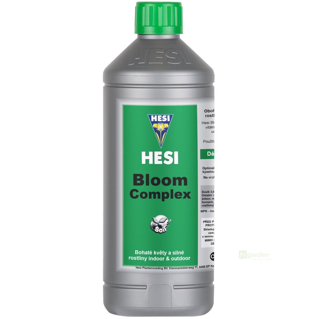 Hesi Bloom Complex to uniwersalny nawóz do gleby, który jest stosowany w fazie kwitnienia. Nawóz jest przeznaczony zarówno dla hodowców roślin domowych, jak i dla hodowców w szklarniach i ogrodach. Nawóz spełnia normy UE i jest wykonany wyłącznie z wysokiej jakości naturalnych składników. Stosunek podstawowych składników odżywczych wynosi N-P-K 4-3-5. Ponadto nawóz jest wzbogacony o witaminy, aminokwasy, proste cukry i pierwiastki śladowe (żelazo, magnez, cynk, miedź, bor, molibden, jod i kobalt). Nawóz wspomaga wzrost i tworzenie kwiatów, dostarcza roślinie niezbędnej energii, a jednocześnie wspomaga mikroflorę glebową.