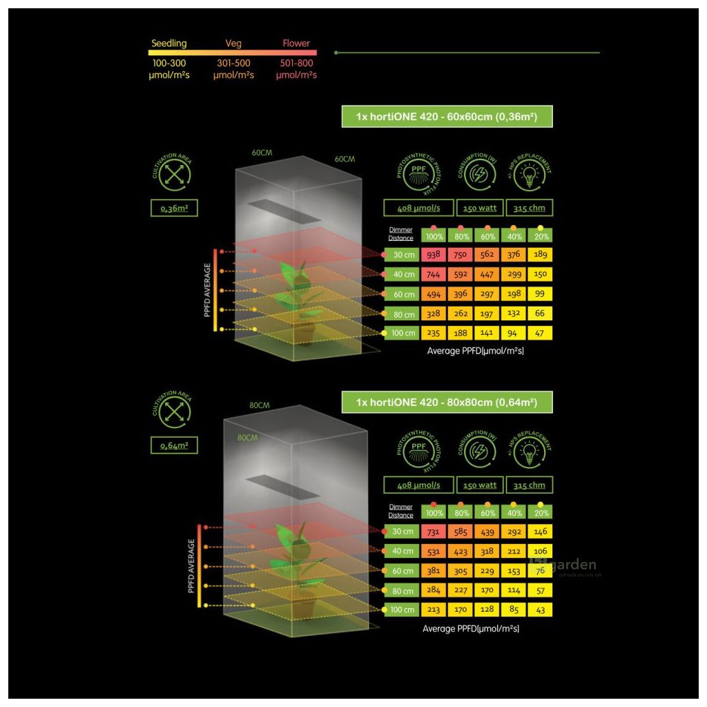 Niemieckie panele LED HortiOne LED 150W są wyposażone w łącznie 420 wysokiej jakości i wydajnych diod.