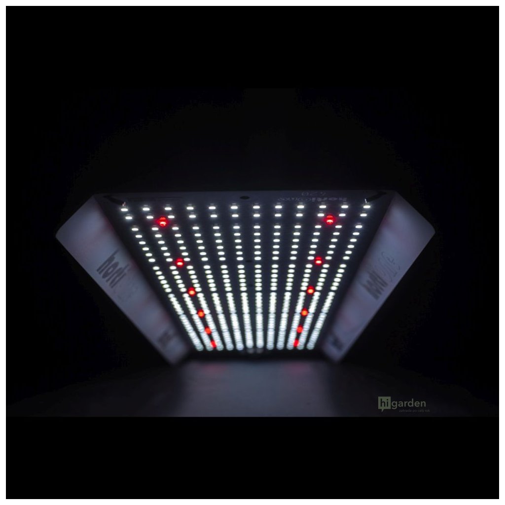 Dzięki długości można uzyskać równomierne oświetlenie na dużych powierzchniach. Konstrukcja hybrydowa z pełnospektralnymi i wysokowydajnymi diodami LED MID-Power (platforma 3030C) o temperaturze 4000 K) zmieszanymi z wysokowydajnymi diodami LED OSRAM (660 nm) gwarantuje wysoką wydajność i doskonałe kwitnienie.