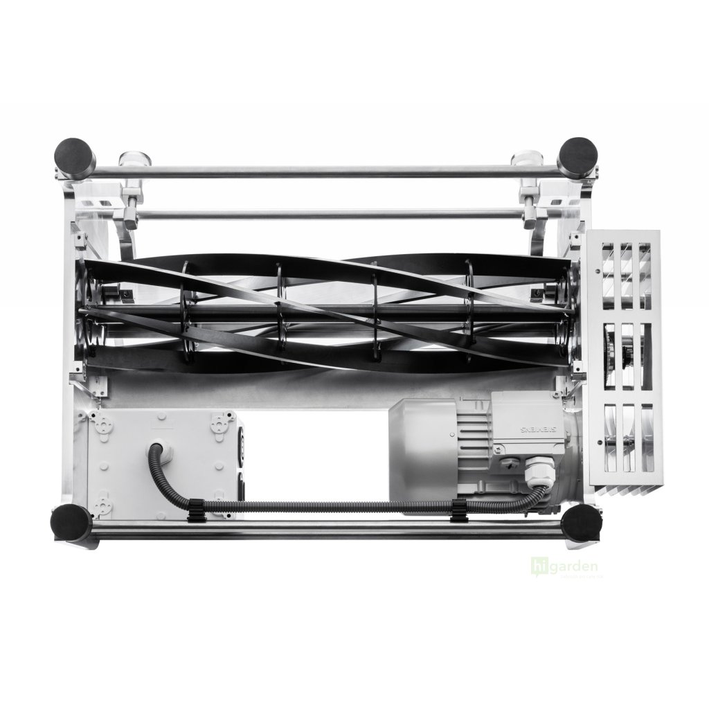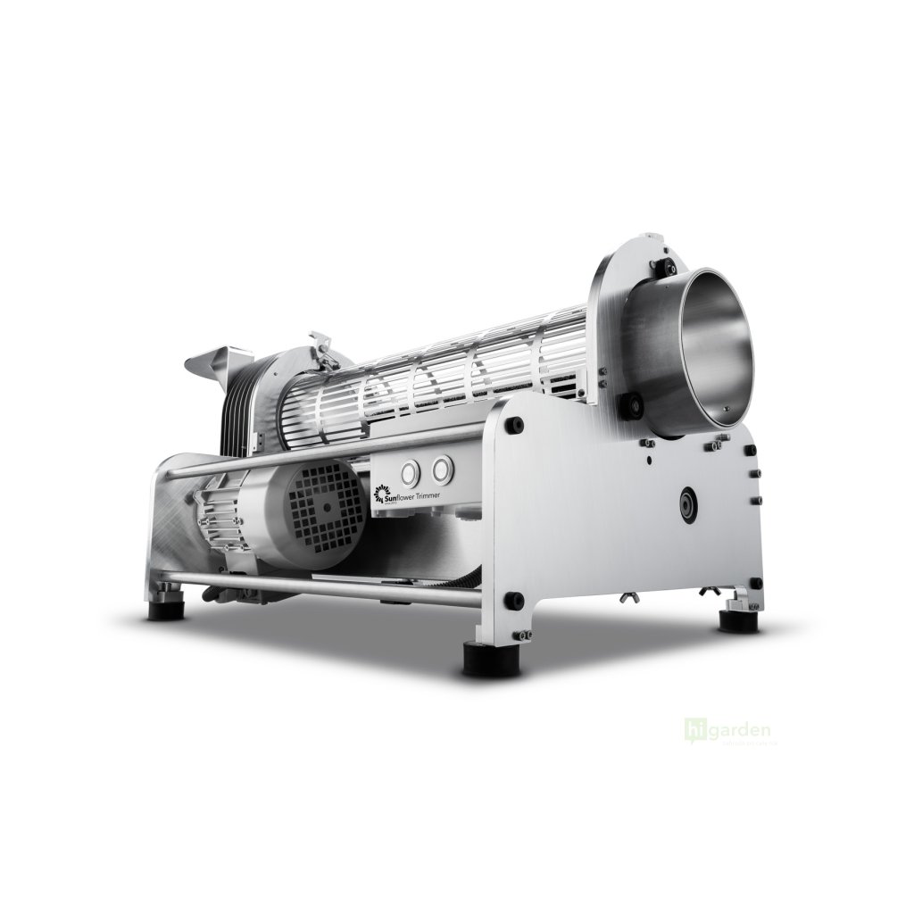 Trymer to w pełni zautomatyzowane urządzenie o wydajności cięcia do 10 kg/godz., zapewniające prawdziwą efektywność. Kwiaty są ładowane do leja ze stali nierdzewnej i przesuwane do bębna ze stali nierdzewnej, gdzie są przycinane. Bęben o średnicy 126 mm zapewnia wystarczającą pojemność dla typowej małej lub średniej produkcji. Kwiaty obracają się w bębnie i powoli przez niego przesuwają. Regulowane ostrza pozwalają na precyzyjne ustawienie szczeliny przycinania między ostrzem a bębnem, dzięki czemu cięcia są czyste. Przy odległości przycinania 1 mm uzyskasz idealnie przycięte kwiaty. Materiały odpadowe, takie jak liście i łodygi, są automatycznie przenoszone do worka na odpady.