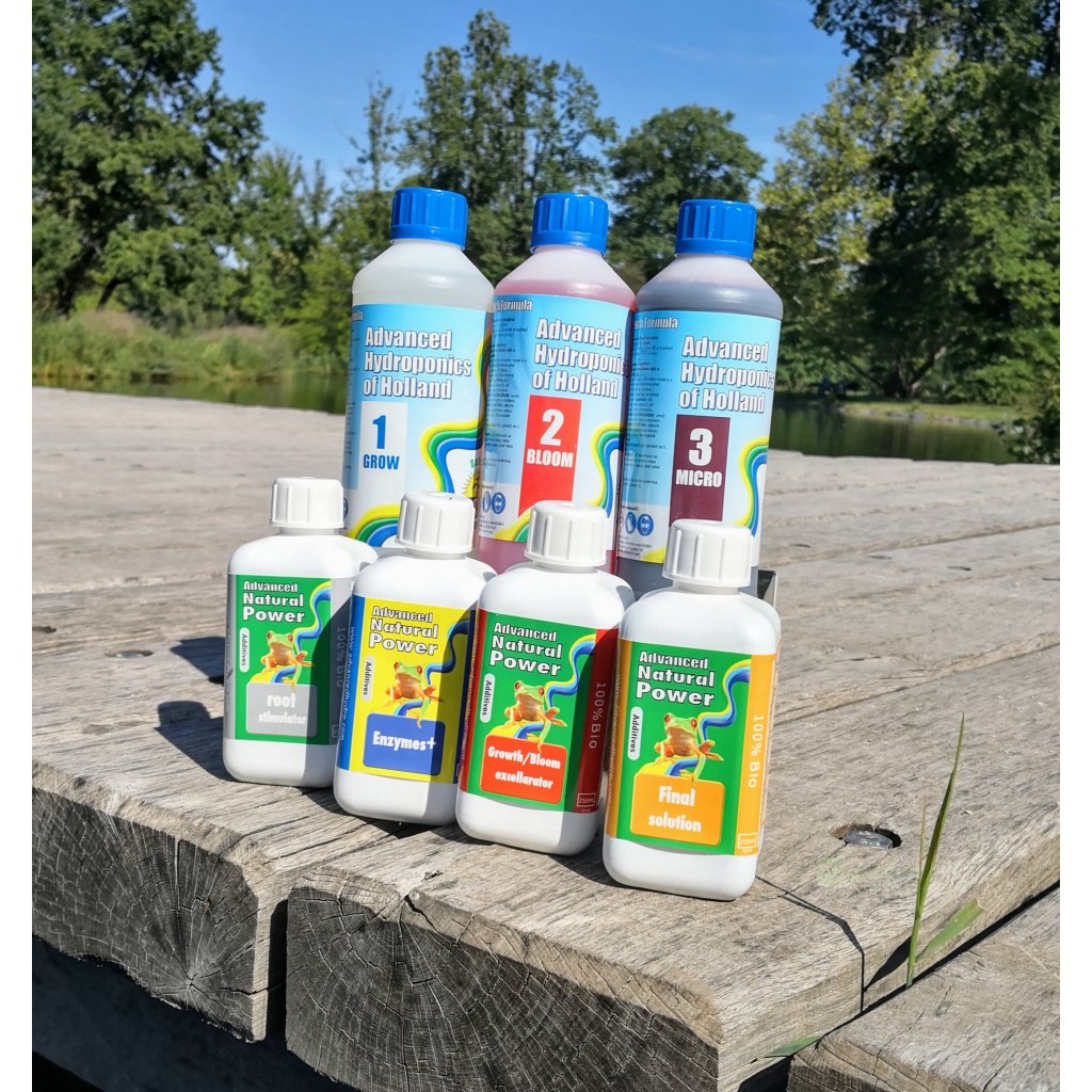 - Enzymy 0,25 l - zwiększa pobór tlenu, poprawia odporność rośliny, zapewnia lepsze wchłanianie składników odżywczych; przeznaczony do fazy wzrostu i kwitnienia