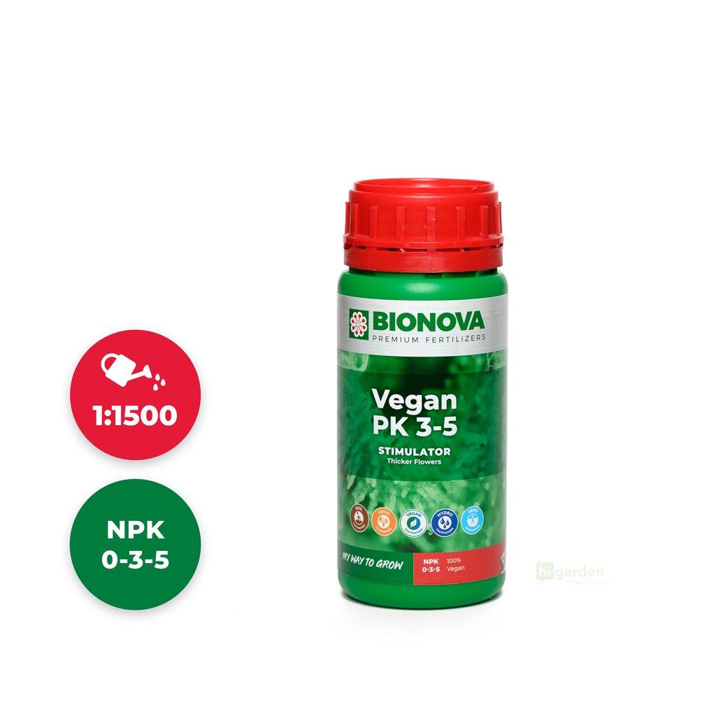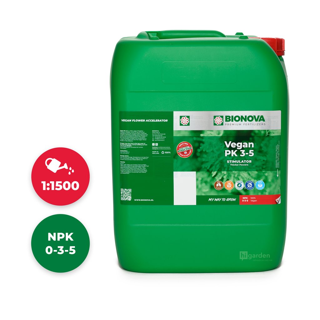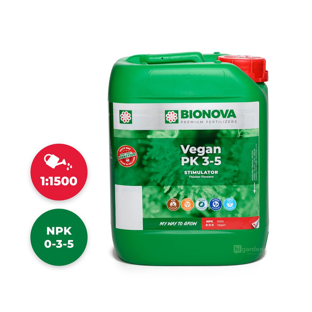 Vegan PK 3-5 to idealnie zbilansowana kombinacja kluczowych elementów dla fazy kwitnienia – fosforu (P) i potasu (K). Te substancje odżywcze są pozyskiwane z najczystszych roślinnych źródeł, co gwarantuje nie tylko wegańską jakość, ale także wyjątkową skuteczność. Dzięki temu, że nawóz jest natychmiast przyswajalny przez system korzeniowy, w końcowym produkcie nie pozostają żadne niepożądane pozostałości.