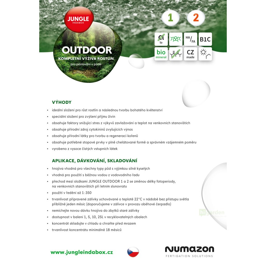 JUNGLE OUTDOOR 1 to wysoce skoncentrowany, kompleksowy nawóz przeznaczony do fazy wzrostu. Specjalnie opracowany do uprawy w glebie. Odpowiedni dla szerokiego spektrum podłoży glebowych i dla wszystkich typów systemów nawadniania. Gwarantuje doskonałe rezultaty uprawy.