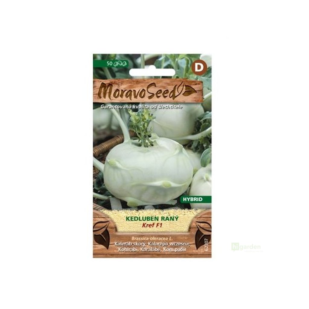 Opakowanie nasion wczesnego kalarepy Kref F1 od Moravo Seed zawiera 50 nasion. Bardzo wczesna odmiana hybrydowa nadaje się do uprawy polowej i przyspieszonej.