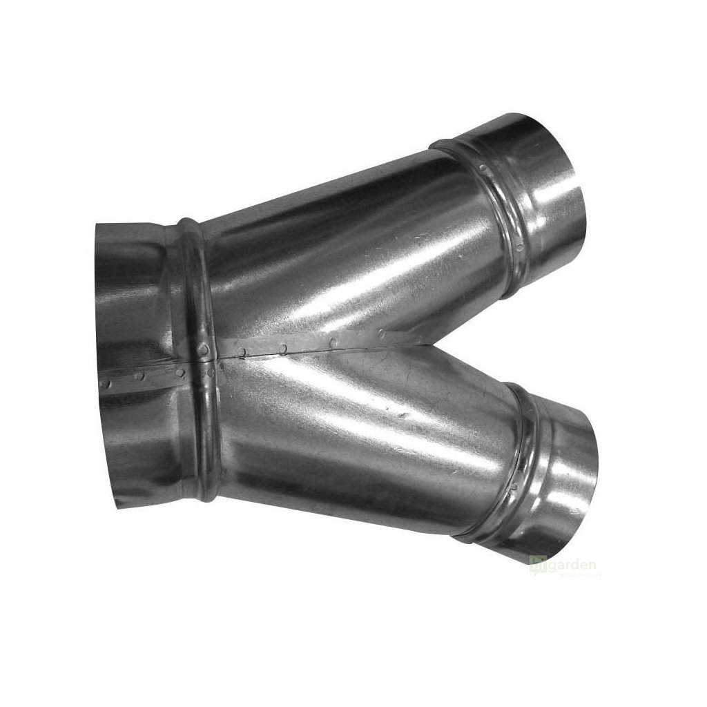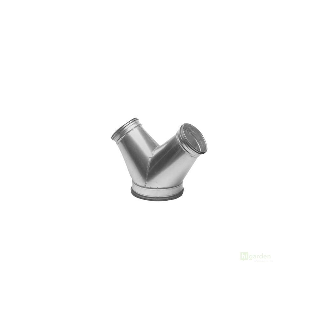 Rozgałęźnik spodniowy lub trójnik Y. Nadaje się do dystrybucji powietrza i jego rozgałęziania w wielu miejscach. Zalecamy do aktywnego nawiewu. Za silnikiem podłącza się rozgałęźnik typu Y (lub rozgałęźnik spodniowy) i do gałęzi doprowadzających aluflex, sonoflex, combiflex lub Phonic Trap do pomieszczenia uprawowego lub skrzyni uprawowej. Należy zadbać o to, aby oba nawiewy były tej samej długości i miały minimalną liczbę zgięć. Tylko w ten sposób zapewni się równomierny dopływ świeżego powietrza do obu miejsc aktywnego nawiewu.