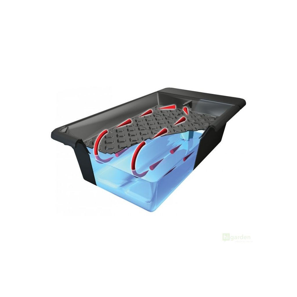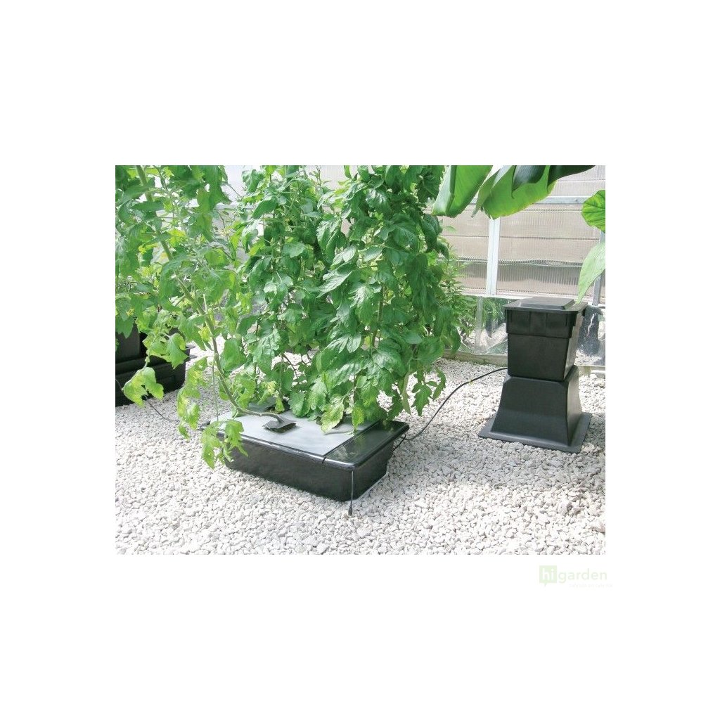 Sprawdzony system hydroponiczny NFT Gro Tank o wymiarach 152,5 x 48,5 x 19 cm przeznaczony jest do efektywnej uprawy maksymalnie 8 roślin. Wysoce skuteczny system nawadniania Gro Tank zapewnia ciągły transport składników odżywczych do korzeni. Pompa pracuje nieprzerwanie, wypompowując roztwór odżywczy ze zbiornika do rynny. Stąd roztwór powoli spływa po korzeniach, a roślina może pobierać potrzebne jej składniki odżywcze. Resztki pożywki, których roślina nie zużyje natychmiast, wracają do zbiornika i cały proces się powtarza.