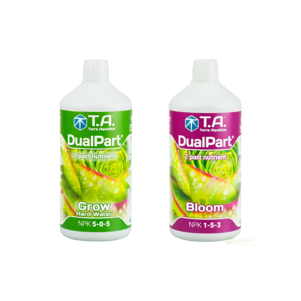 W przeciwieństwie do konwencjonalnych nawozów A+B lub bardziej złożonych systemów, takich jak TriPart, w przypadku DualPart od wysiania nasion do zbioru potrzebne są tylko dwie butelki: DualPart Grow i TA DualPart Bloom . Ich proporcje zmieniają się tylko w trakcie cyklu wzrostu. Składowa Grow dominuje w fazie wzrostu, podczas gdy składowa Bloom przeważa w fazie kwitnienia i tworzenia owoców. Takie podejście pozwala zaoszczędzić nie tylko miejsce, ale i pieniądze.