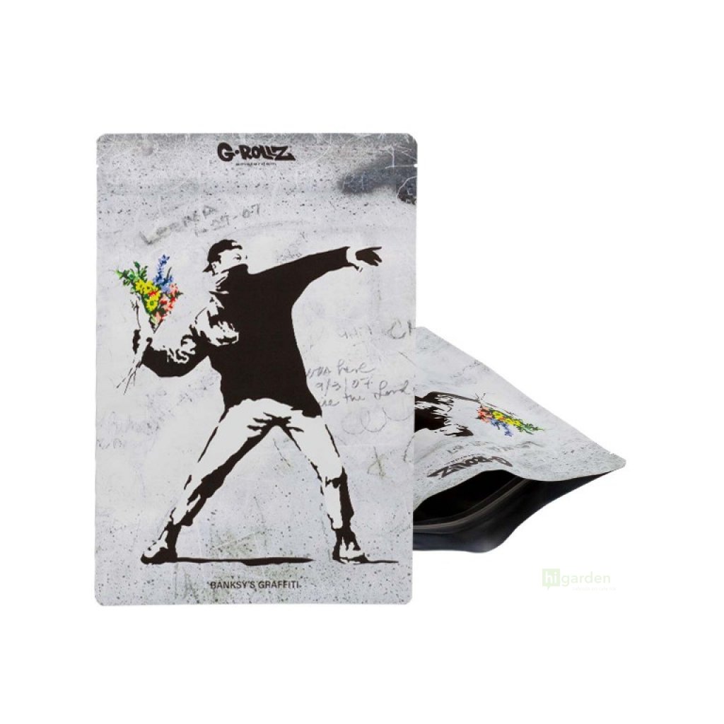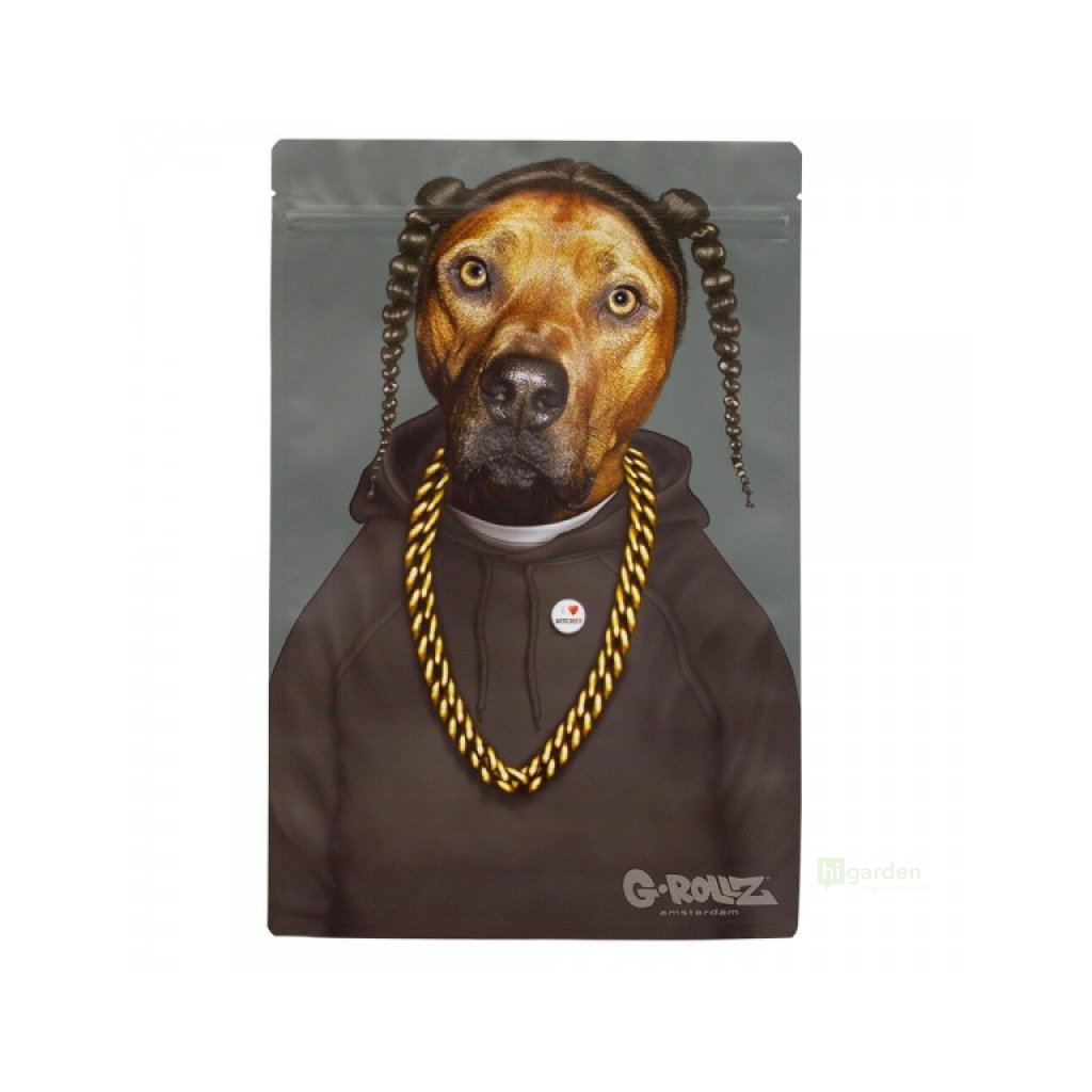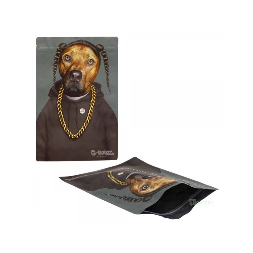 Duży, sztywny worek z zamkiem błyskawicznym G-Rollz, odporny na wyciek zapachu i światło.