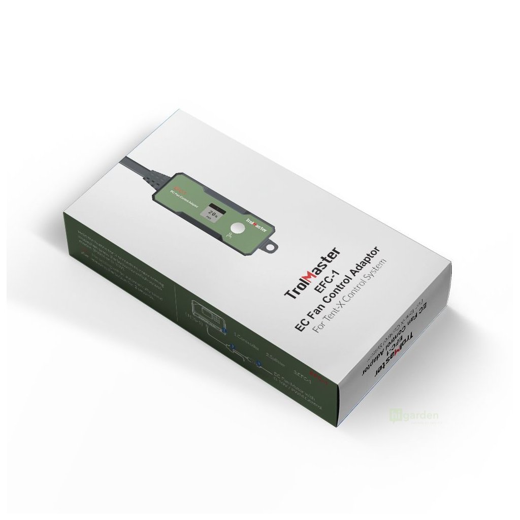 TrolMaster EFC-1 został specjalnie zaprojektowany do użytku z systemem sterowania Tent-X w celu kontrolowania zmiennych prędkości wentylatora EC. EFC-1 musi wybrać tryb wyjściowy do sterowania wentylatorem EC w trybie PWM lub 0-10V.