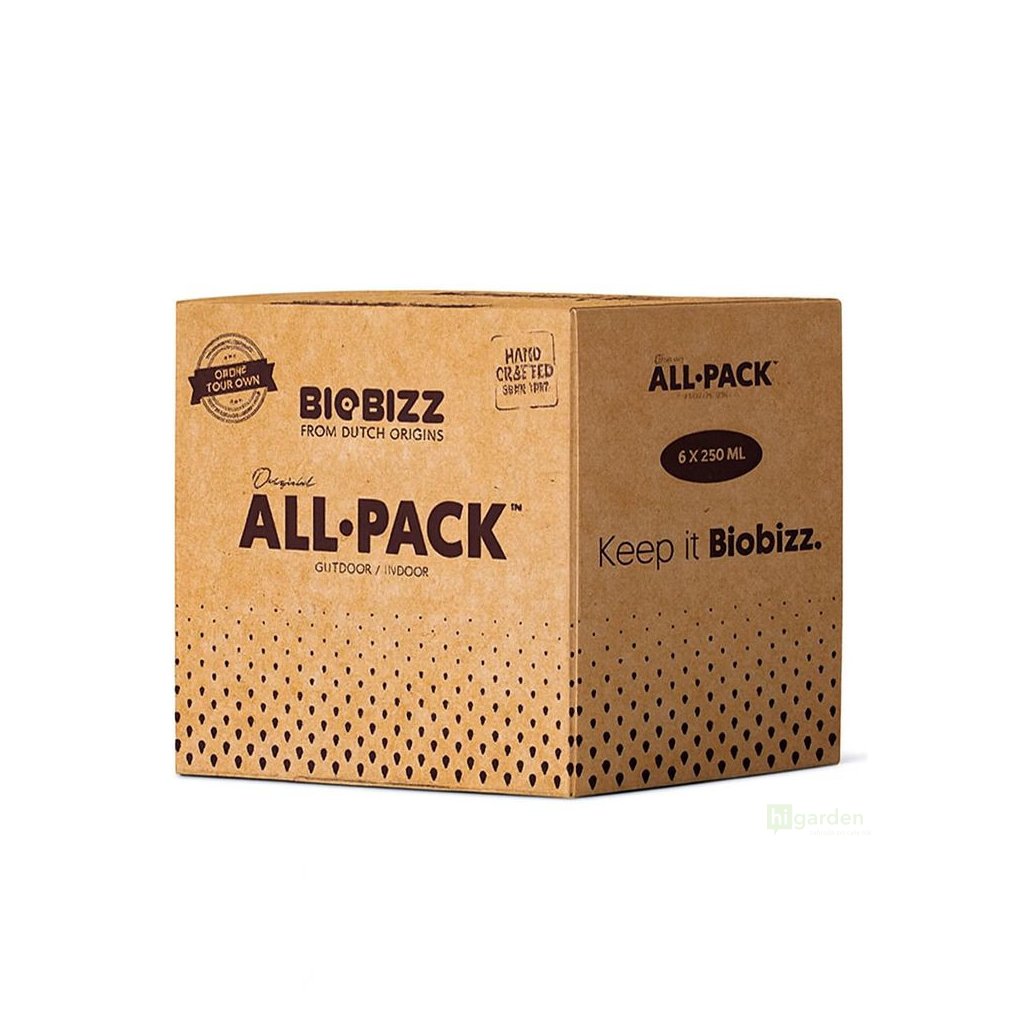 Nowy Biobizz All Pack Indoor to idealny sposób na poznanie ekosystemu Biobizz: sześć podstawowych organicznych składników odżywczych i wzmacniaczy, które odżywiają Twoje rośliny na każdym etapie wzrostu, wszystko w jednym poręcznym pudełku.